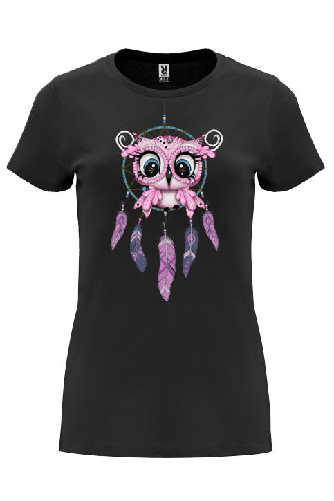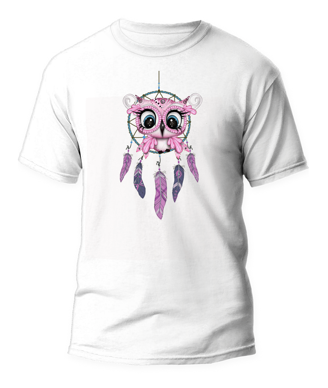 Dale un toque mágico a tu estilo con esta encantadora camiseta blanca o negra de mujer. Su diseño presenta un adorable búho rosa fusionado con un atrapasueños, adornado con delicadas plumas en tonos pastel. Una prenda perfecta para quienes aman los símbolos de protección, la naturaleza y los detalles únicos. ¡Ideal para un look fresco y original!