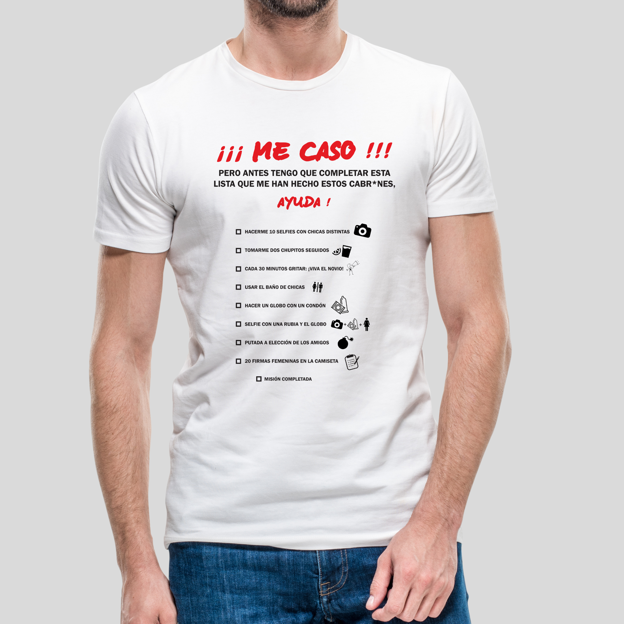 Esta camiseta blanca unisex es la prueba definitiva de que el novio sobrevivió (o al menos lo intentó) a su despedida de soltero. Con una lista de retos épicos impuesta por sus queridos y “cabrones” amigos, garantiza una noche de risas, locuras y anécdotas para la historia. ¿Selfies con desconocidas? ¿Pruebas hasta perder la dignidad? ¿Firmas femeninas en la camiseta? Todo vale en la última gran juerga antes del «sí, quiero». Perfecta para grupos que quieren dejar huella… y resaca. ¿Se atreverá a completar la misión? 😜