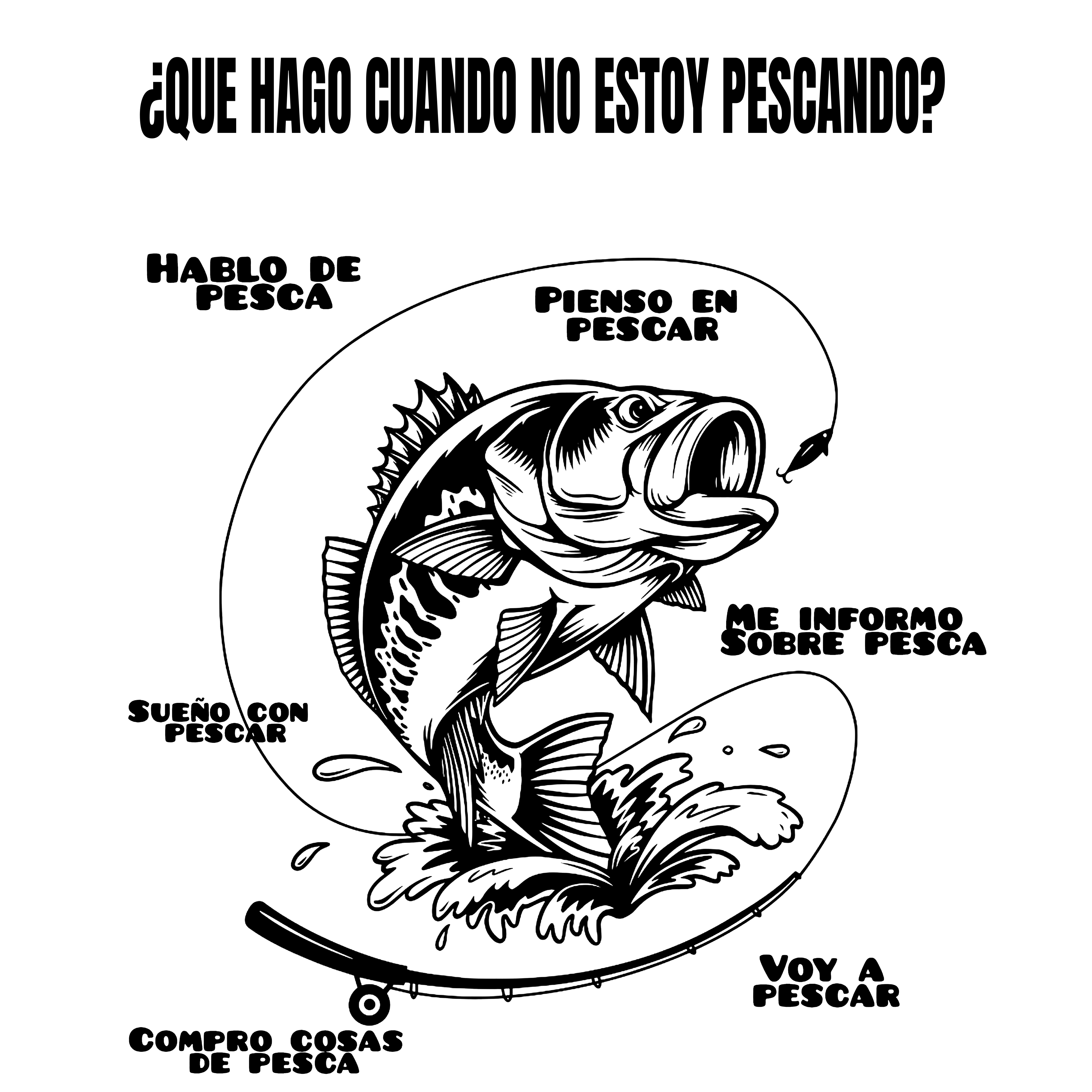 Si la pesca es más que un hobby para ti, esta sudadera es perfecta. Con un diseño llamativo, muestra de forma divertida todo lo que un verdadero pescador hace cuando no está en el agua: hablar de pesca, soñar con ella, comprar equipo y, por supuesto, ¡planear la próxima salida!
